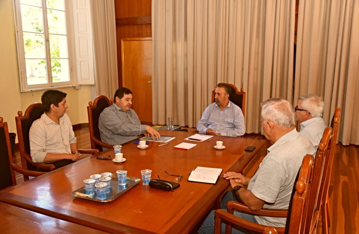 Participaram do encontro o presidente da Fentifumo, Rangel Marcon, acompanhado do presidente e do diretor do Stifa, Éder Rodrigues e Alessandre Pontel, além do secretário municipal de Agricultura, Zeno Assmann.