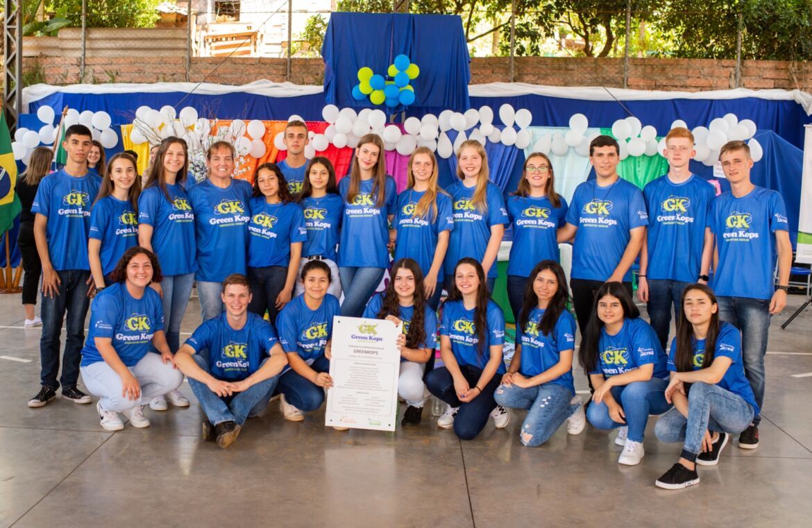 Os alunos apresentaram um resumo da criação do logotipo da nova cooperativa escolar, desenvolvida por eles e com desenho da ex-associada Tanúbia Hochscheidt. Ela teve como base um modelo atômico, que foi escolhido pelos estudantes como representação dos ideais do grupo. Conforme os jovens, o nome na língua inglesa remete à ideia de comunicação internacionalizada. A tradução da palavra green para o português significa verde, o que faz referência ao verde da região, e o Kops é uma homenagem à escola. Entre outras palavras-chave estão força, crescimento, conhecimento, segurança, respeito e sustentabilidade.
