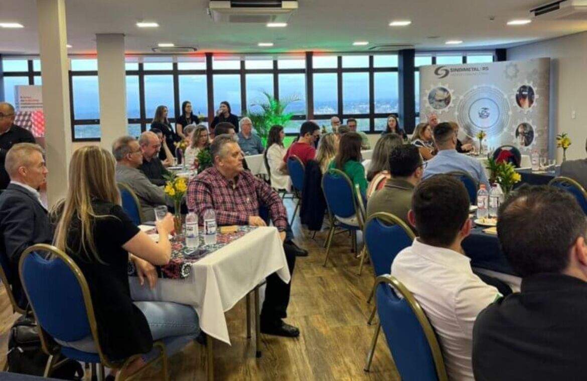 A 3ª edição do Metal Connect foi realizada pelo Sindicato das Indústrias Metalúrgicas, Mecânicas e de Material Elétrico e Eletrônico de São Leopoldo (Sindimetal RS) nesta quinta-feira (18), na cidade do Vale do Sinos. O evento, realizado em formato de networking, reuniu cerca de 50 lideranças empresariais e teve como destaque a palestra sobre excelência operacional na indústria, conduzida pelo vice-presidente de Operações da Stihl Brasil e do Sindimetal RS, Arno Tomasini.