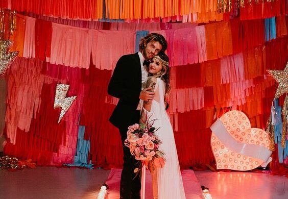Além da vibe das cores, optar por uma decoração escura e melancólica tem sido outra forma de dizer chega aos casamentos neutros. Com pesquisas como “estética de romance sombrio” (+270%) e “maquiagem melancólica” (+100%) aumentando desde o ano passado, não há dúvidas de que o usuários estão querendo incorporar um certo ar sombrio às festas de casamento. Isso cria um clima de intimidade, mistério e drama, o que parece ser romântico e cativante para alguns casais.