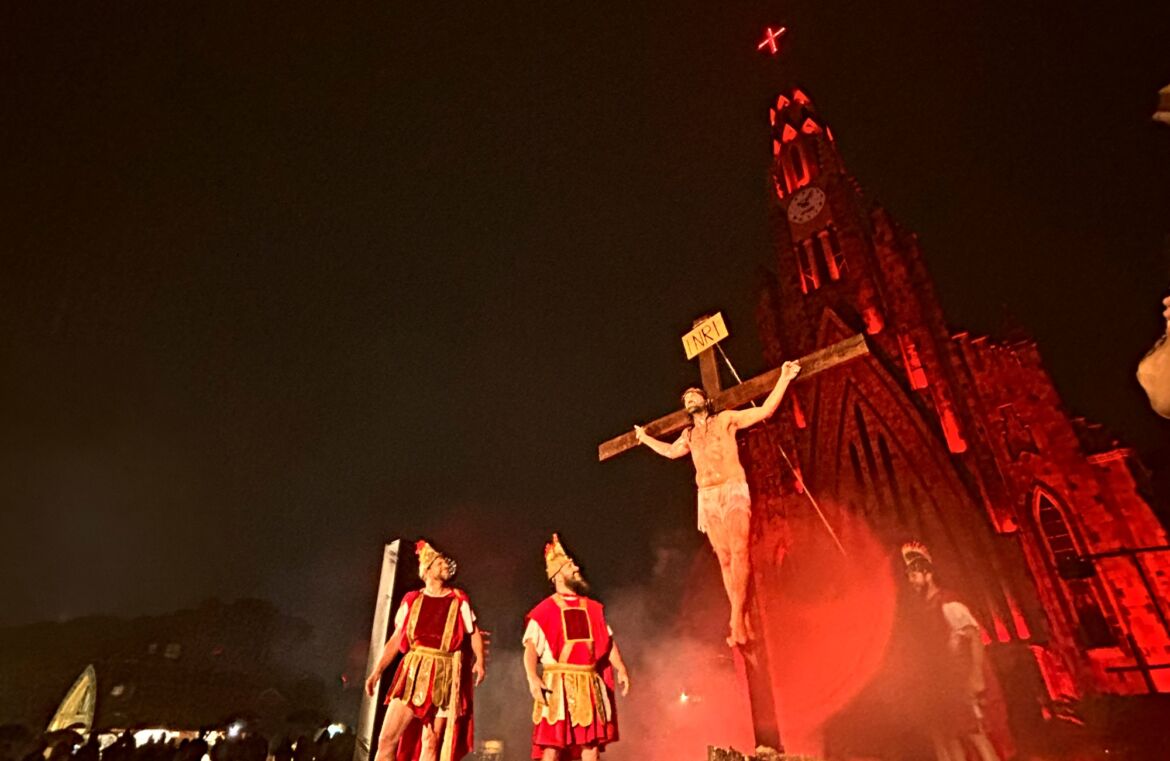 Criado pela Secretaria de Turismo e Cultura de Canela para a edição de 2026, “Da Cruz à Luz” foi concebido como um percurso simbólico que conduz o público pela trajetória de dor, entrega e redenção de Cristo. O formato busca promover uma imersão por meio da integração entre teatro, música e efeitos cênicos.