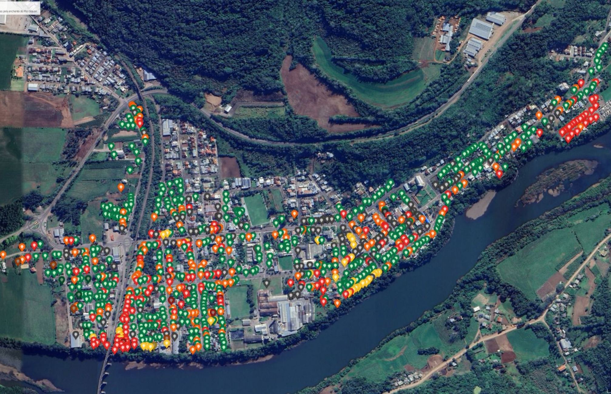 Por meio de uma plataforma de georreferenciamento, todas as moradias da parte urbana da cidade foram mapeadas, vistoriadas e posteriormente identificadas com cores (verde, amarelo, laranja e vermelho). O objetivo da classificação é identificar áreas prioritárias de intervenção e direcionar os esforços de recuperação de maneira eficaz.