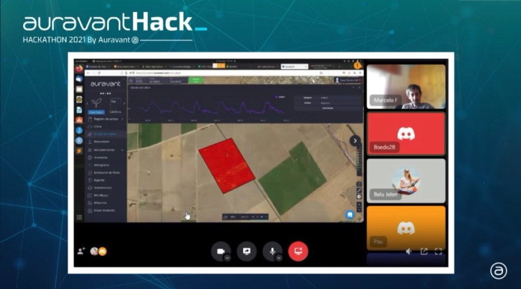 Com mais de 100 participantes de países como Argentina, Brasil, Uruguai e Venezuela, na América do Sul; Estados Unidos, Honduras e México, nas Américas Central e do Norte, além de Espanha, na Europa, o Auravant Hack 2021 durou pouco menos de 24 horas e teve como desafio desenvolver uma ferramenta ou produto que permitisse conhecer quantitativamente o valor de um lote ou talhão.