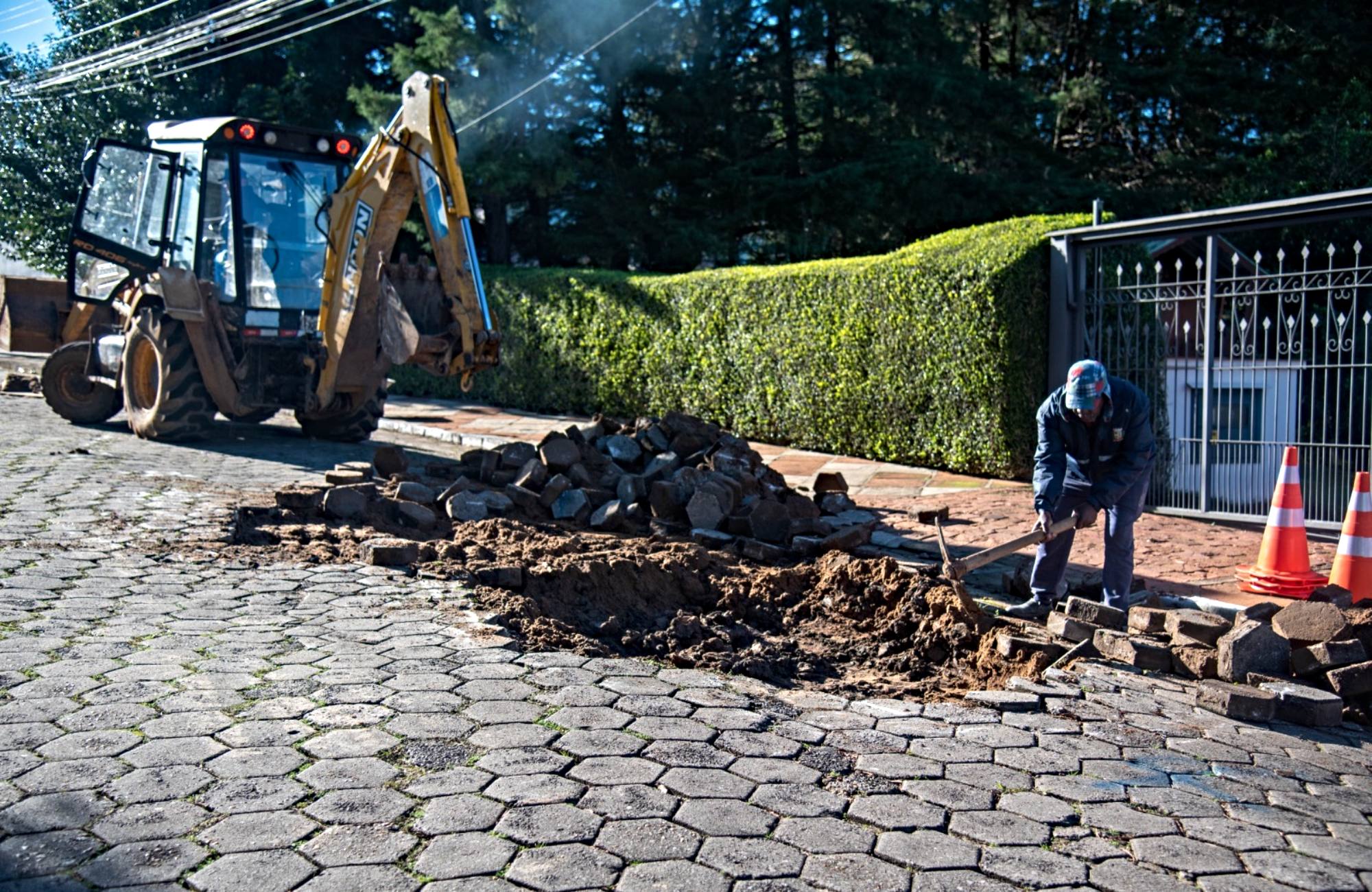As atividades com foco em melhorar as condições de tráfego nas vias públicas municipais ganharam o reforço de uma empresa terceirizada, contratada por registro de preço, que iniciou na segunda o trabalho de melhoria de pavimentação em ruas com paralelepípedos e blocos intertravados de concreto. A primeira via contemplada foi a rua Daniel Caspary, no bairro Higienópolis. O contrato prevê a execução de conserto de 10 mil m² de calçamento. Segundo a Secretaria, as vias serão definidas por prioridade levando em consideração a intensidade do trânsito de veículos no local e as condições de conservação da pista.