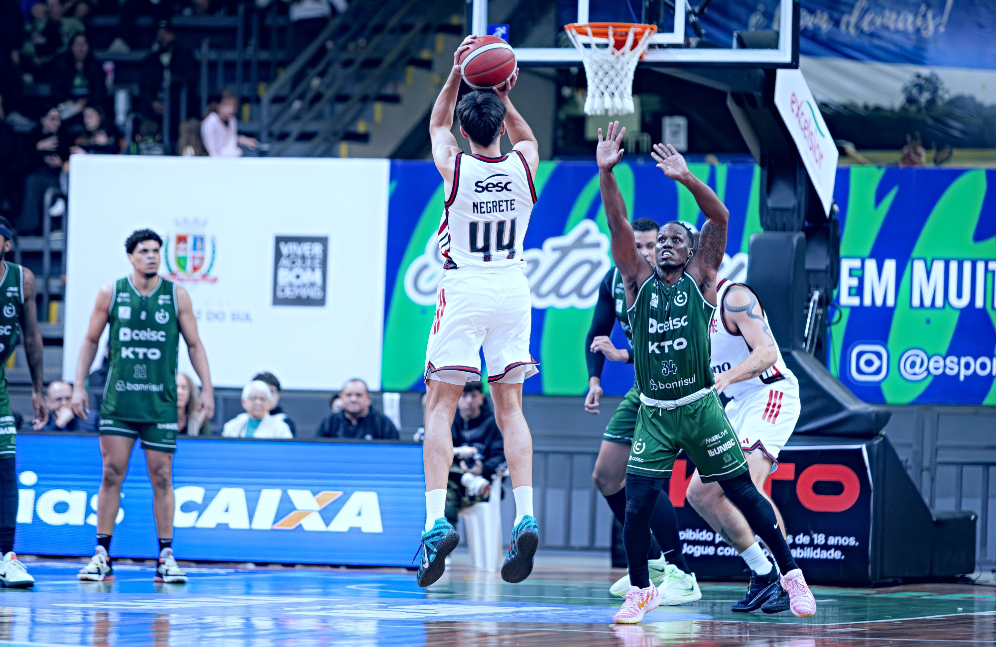 O Ceisc União Corinthians foi derrotado pelo Flamengo por 90 a 77 no terceiro jogo da série de oitavas de final dos playoffs do Novo Basquete Brasil, em partida disputada na noite desta segunda-feira (27), no Ginásio Poliesportivo Arnão, em Santa Cruz do Sul, diante de cerca de 5 mil torcedores. Após equilíbrio no início do confronto, a equipe carioca abriu vantagem no segundo quarto e administrou o resultado até o fim. O revés do conjunto santa-cruzense veio com parciais desfavoráveis de 23 a 15 e 30 a 16 nos dois primeiros quartos, 29 a 20 à favor no terceiro e igualdade de 17 a 17 no último período. Com o resultado, o time gaúcho precisará vencer o quarto jogo da série ou estará eliminado da competição nacional.