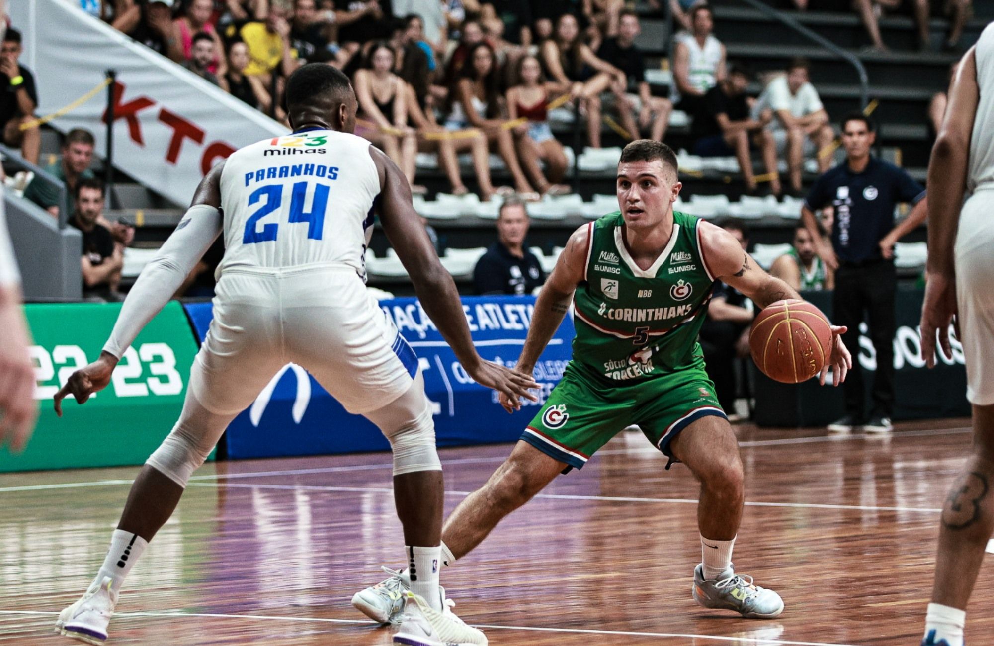 Mesmo com uma grande atuação no último quarto, o União Corinthians não conseguiu vencer uma das melhores equipes do Novo Basquete Brasil (NBB) 2022/2023 e acabou superado pelo forte 123 Minas na tarde deste domingo, 12, no Ginásio Poliesportivo Arnão. Com final eletrizante, o duelo fechou em 78×82 (17×25; 19×22; 18×16;24×19). A equipe santa-cruzense volta à quadra na quinta-feira, 16, quando recebe o São José, no Ginásio Poliesportivo Arnão, de olho em uma das vagas aos playoffs do NBB.