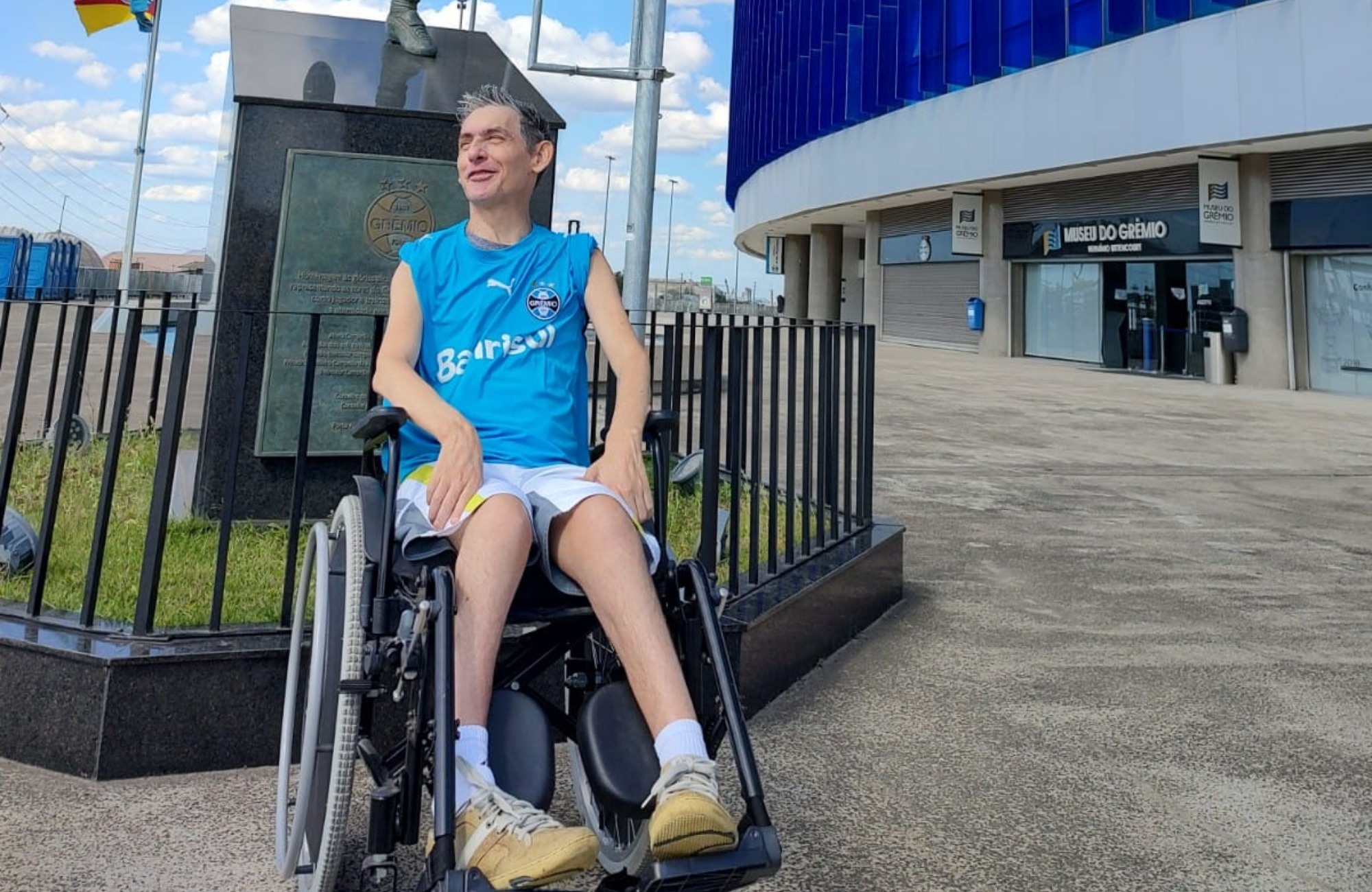 O paciente da Unimed Lar (serviço da Unimed Vale dos Sinos que permite que os pacientes sejam atendidos em casa), Carlos Rafael Carvalhães, que completou recentemente 47 anos, ganhou de presente de aniversário a realização de um sonho. O médico da Unimed Vale do Sinos, Dr. Rafael Vilanova, levou, na última quinta-feira (27) Carlos e sua mãe Nariman para conhecer a Arena, estádio do seu time favorito, o Grêmio. O paciente, curado há pouco tempo, lutou contra um câncer de pâncreas.