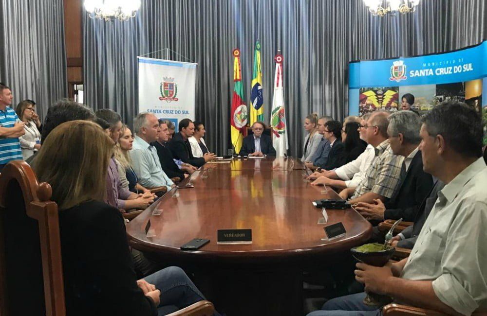 Mais um importante passo foi dado para implantação do Hospital Veterinário em Santa Cruz do Sul. Na tarde desta quinta-feira (15), o prefeito Telmo Kirst recebeu no Salão Nobre da Prefeitura a reitora da Universidade de Santa Cruz do Sul (Unisc), Carmen Lúcia de Lima Helfer, engenheiros, arquitetos, e docentes do curso de Medicina Veterinária.