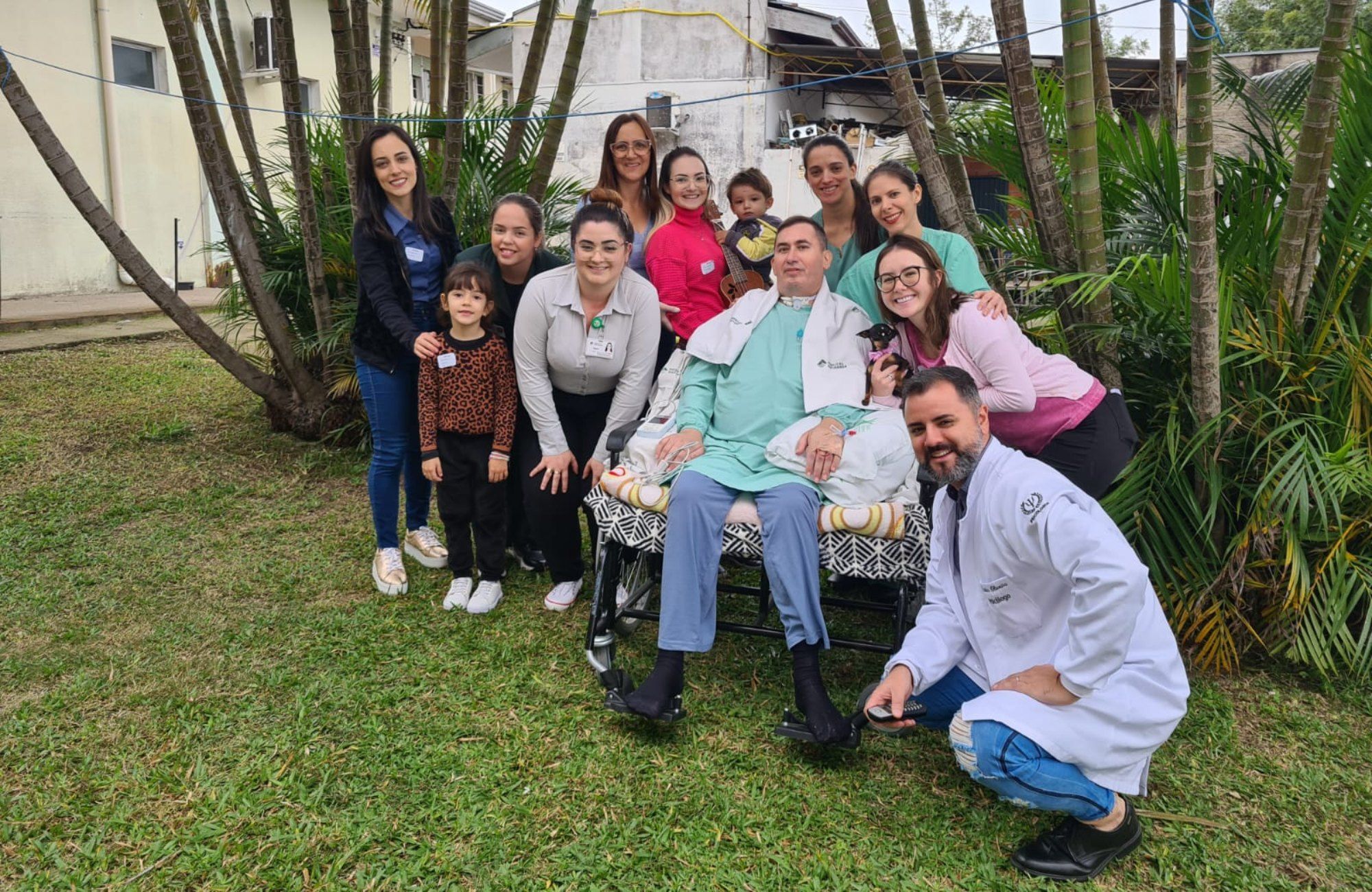 O encontro emocionou não apenas o Sr. Jair, mas também os profissionais e familiares presentes, fortalecendo os laços de afeto e promovendo um momento de alívio em meio ao processo de recuperação.